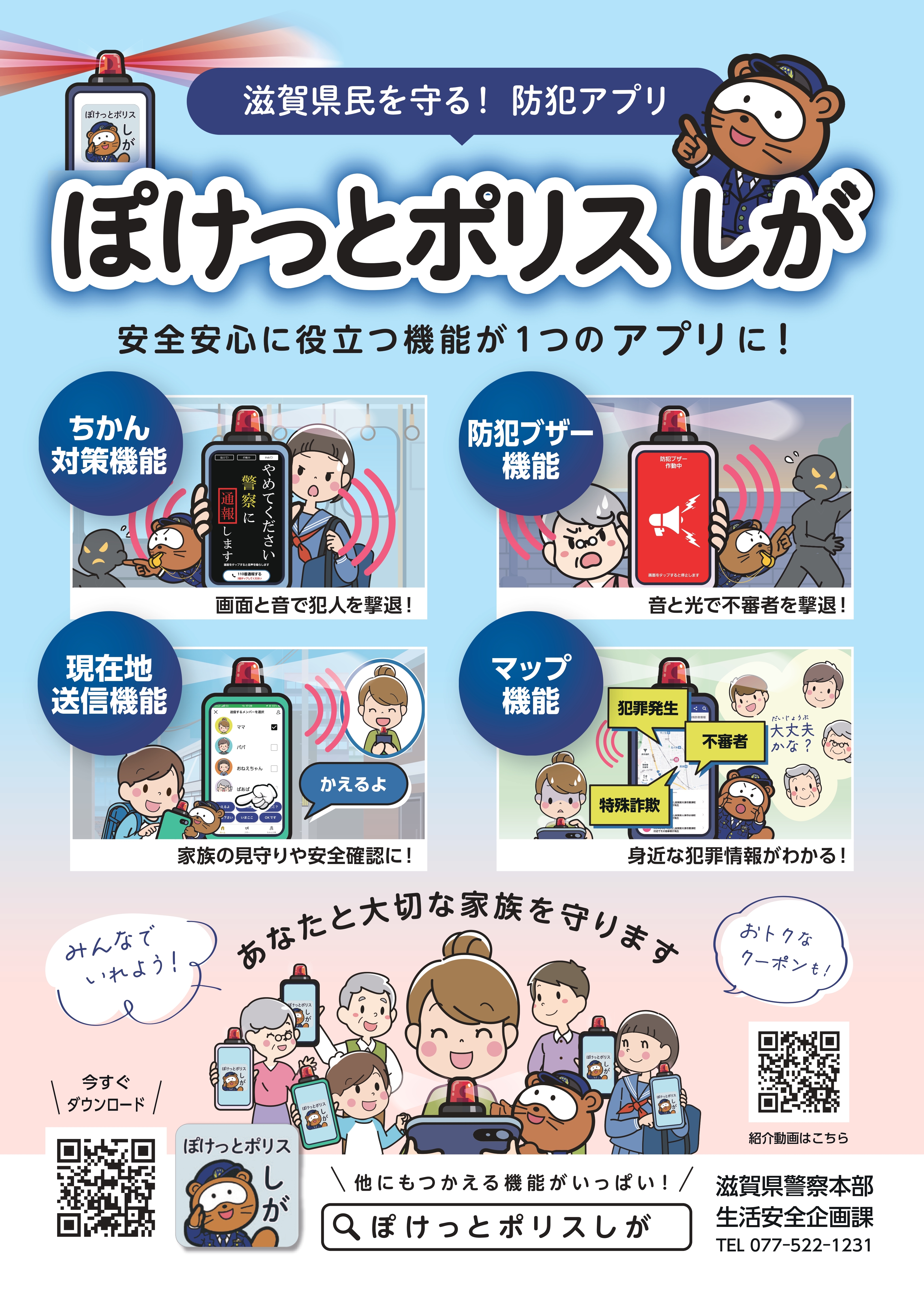 滋賀県警察では、公式防犯アプリ「ぽけっとポリスしが」を運用しています。