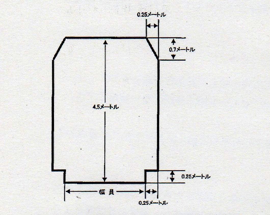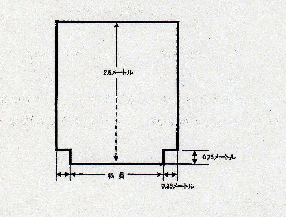 (1) 堤防に設ける管理用通路は、計画高水流量が1秒間につき100立方メートル未満かつ川幅が10メートル未満である区間においては、幅員は、2.5メートル以上とし、建築限界は、次の図に示すところによること。