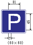 | ア 道路に設置する「駐車場(117-A)」を表示する案内標識については、便所を表す記号を表示する場合にあっては、図示の横寸法を図示の寸法の2.5倍まで拡大することができる。 | |