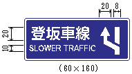| ウ 道路に設置する「登坂車線(117の2-A)」および「道路の通称名(119-A)、(119-B)、(119-C)」を表示する案内標識については、道路の形状または交通の状況により必要がある場合にあっては、図示の寸法の1.5倍または2倍に、それぞれ拡大することができる。 | |